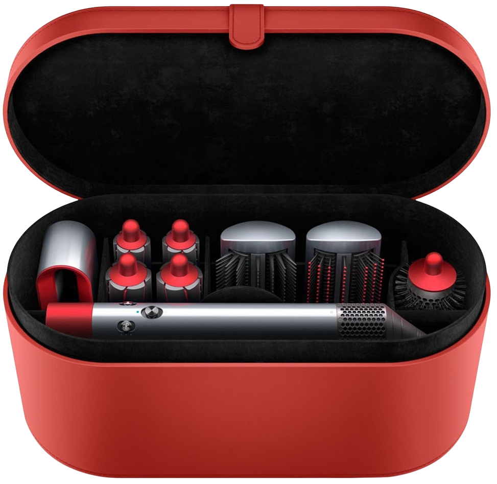 Превосходный стайлер от Dyson – это сочетание стиля, красоты и функциональности. Устройство выполнено в модном цвете – красный. Отлично подойдет для ежедневного использования. У него есть восемь насадок, которые аккуратно воздействуют на пряди и позволяют не только сушить волосы, но и создать шикарные укладки, без воздействия высоких температур.